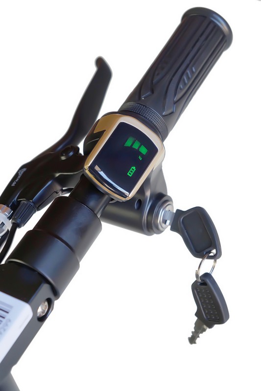 | Techniniai duomenys | Variklio galia: 500 W Variklio tipas: nuolatinis magnetas, nuolatinės srovės variklis be šepetėlių. Svoris: 22 kg Greitis: maždaug 30 km / h Variklis: 500 W / 36 V Baterijos tipas: ličio jonai – 36V / 10Ah Nuvažiuojamas atstumas vienu įkrovimu: 40km Varomoji ašis: galinė Papildoma įranga: 1. Kojelė pastatymui 2. Įkroviklis 3. Diskiniai stabdžiai 4. Pripučiami ratai. Ilgis: 120 cm Sėdėjimo aukštis (reg.): 80 cm Aukštis iki rato: 110 cm Keliamoji galia (kg): iki 90kg |
